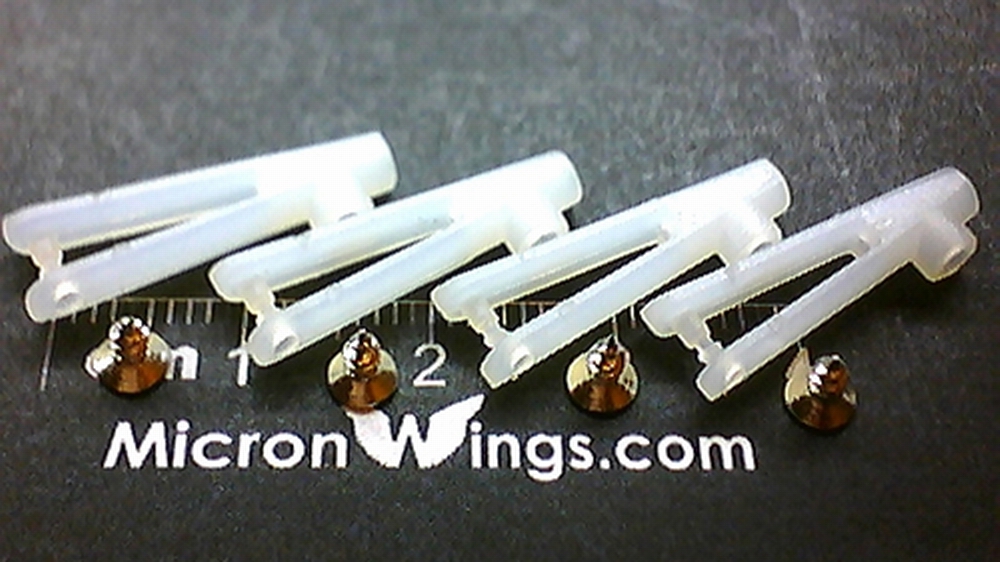 These clevis will fit snugly onto a 0.9 or 1mm carbon pushrod or wire pushrod. They can be secured either by using the supplied screw or simply by gluing. The ball on the connector pin allows them to clip together firmly and when set the internal gap for the control horn is 1.75mm