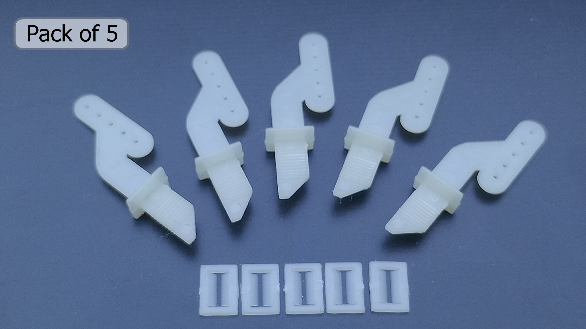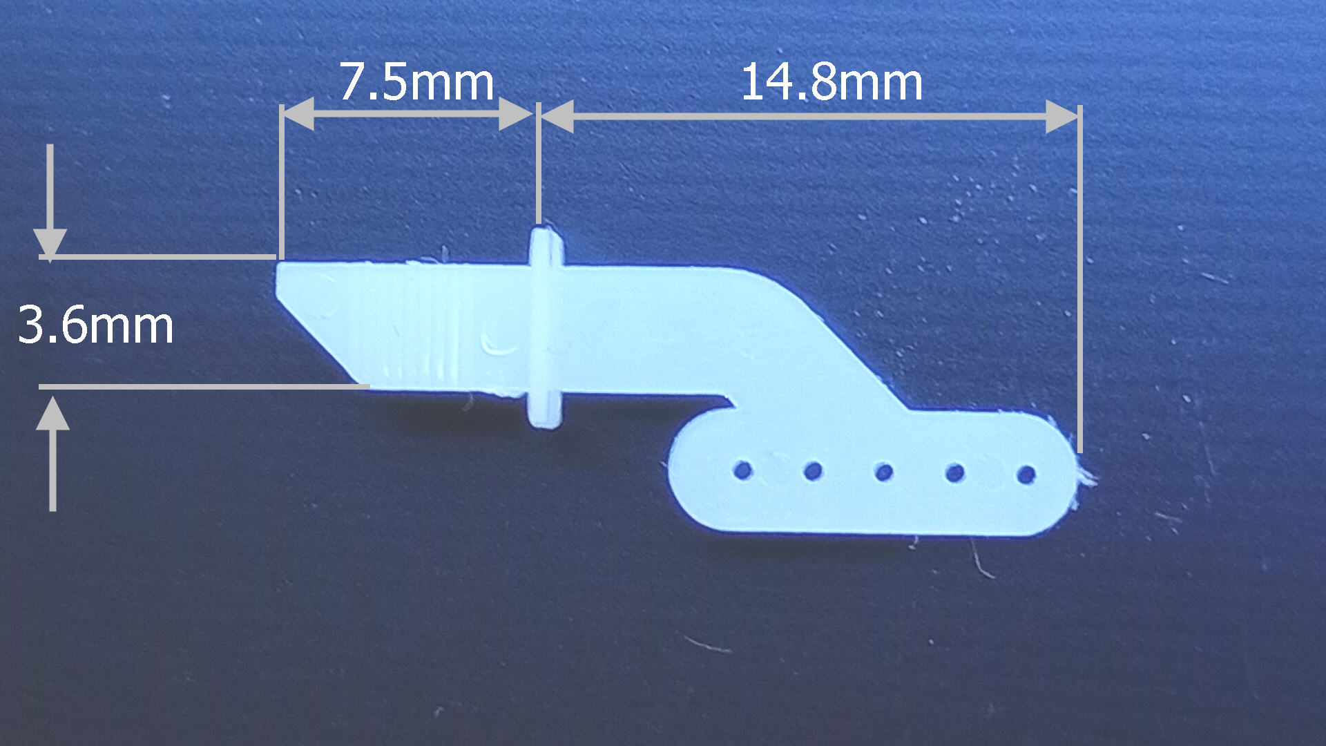 Very light weight and made from nylon, These control horns are perfect for micro applications. The base can be pressed on to secure the horn in place, but it is best to also add a little glue.