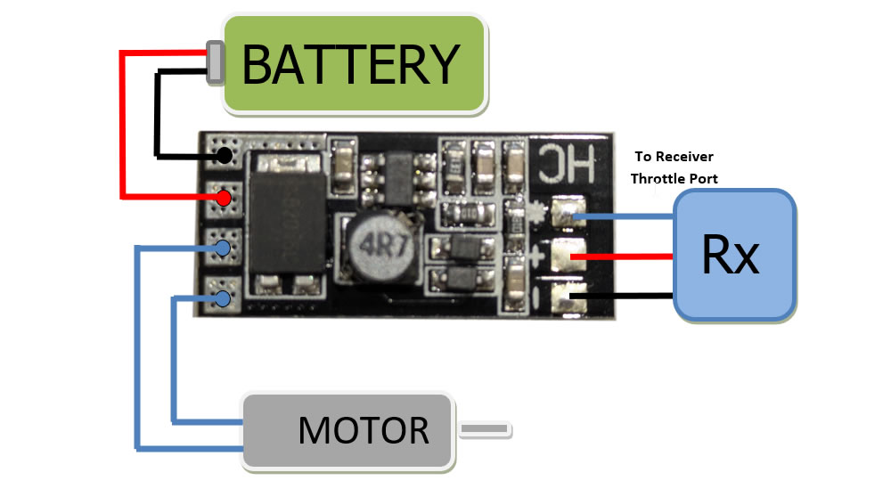 This specially designed ESC unit can supply 20amps constant current. Note that the voltage rating is however 1S (3.7 volts). This unit is not suitable for 2S operation.